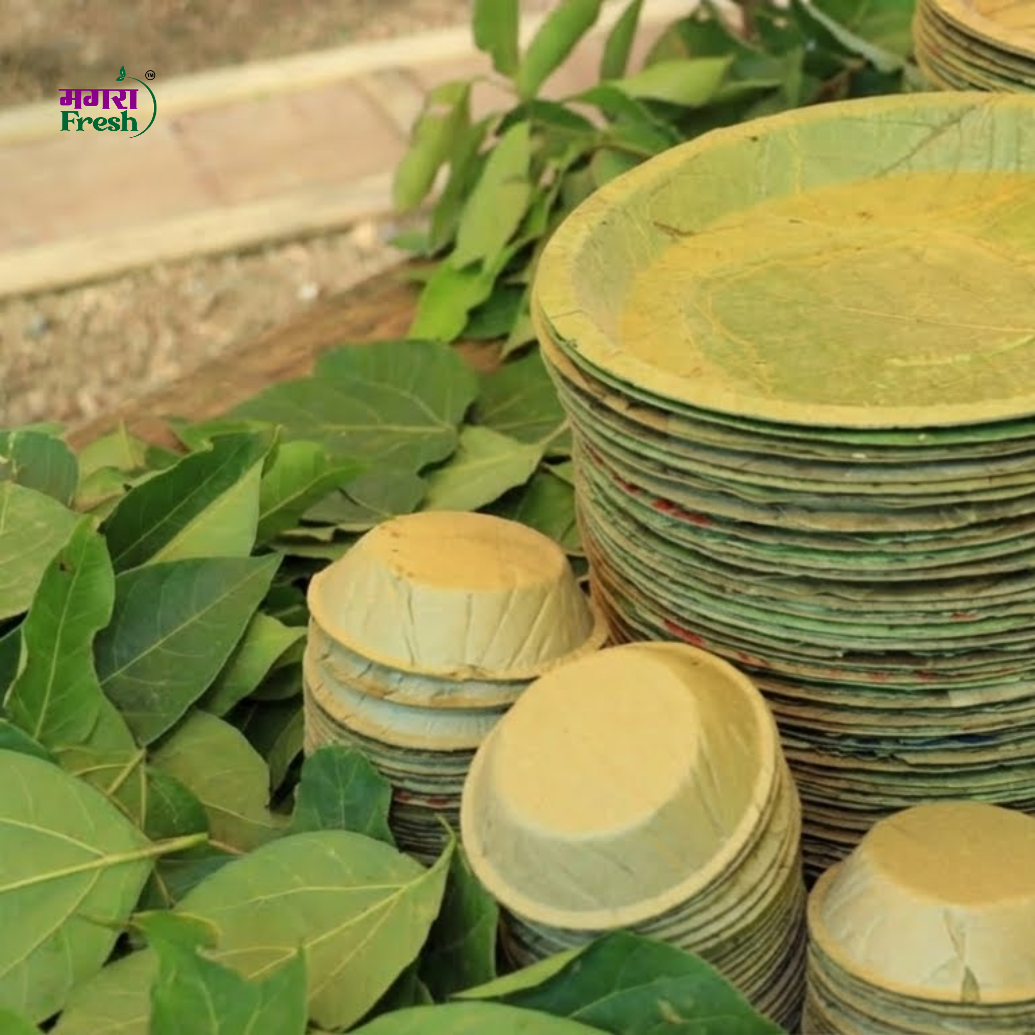 Leaf-based dona and patal are biodegradable and sustainable, offering an alternative to plastic and